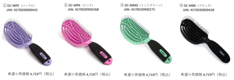 ★ヘアブラシ NuWay4Hair DCシリーズ4色(ピンク、ブラック、パープル、グリーン4色展開)